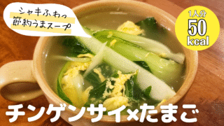 忙しい日やダイエット中にぴったりな「チンゲンサイと卵のふわとろスープ」のレシピです。チンゲンサイ1株と卵1個、水と鶏がらスープの素で作れる簡単中華風スープ。1人分約60円・約50kcalで、ビタミンやカルシウムもとれる優しい節約スープです。