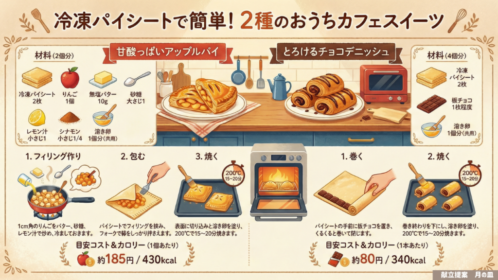 冷凍パイシートで簡単!アップルパイ&チョコデニッシュ|冬に食べたいサクサクおうちスイーツ