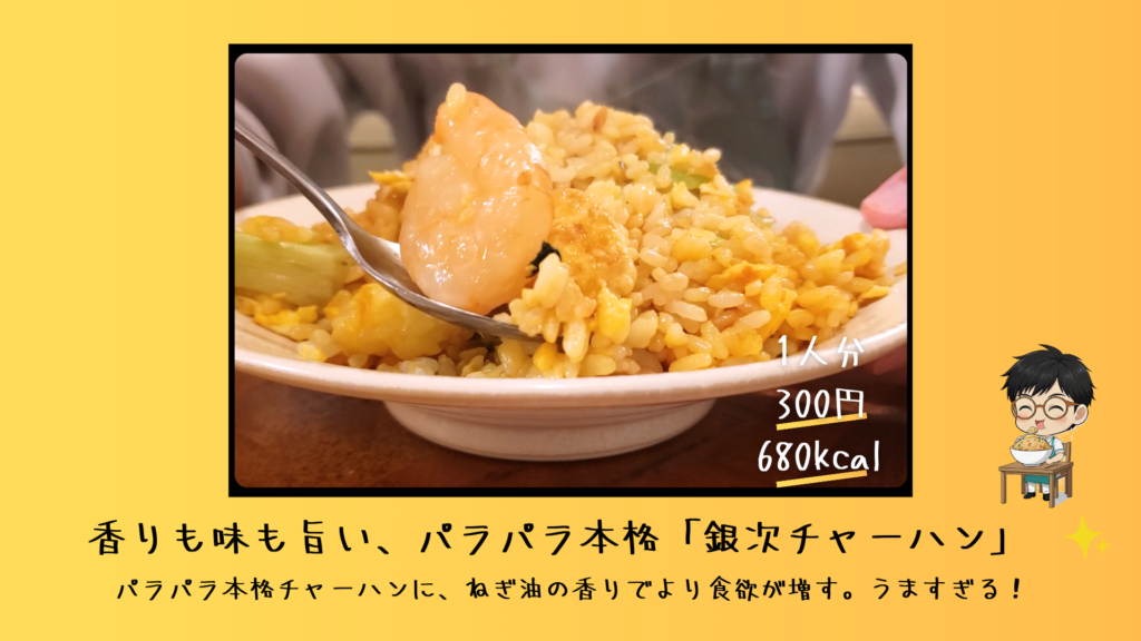 みなさん、こんにちは!今日は、お笑いファンならずとも一度は食べてほしい、究極の炒飯 「銀次チャーハン」 をご紹介します。