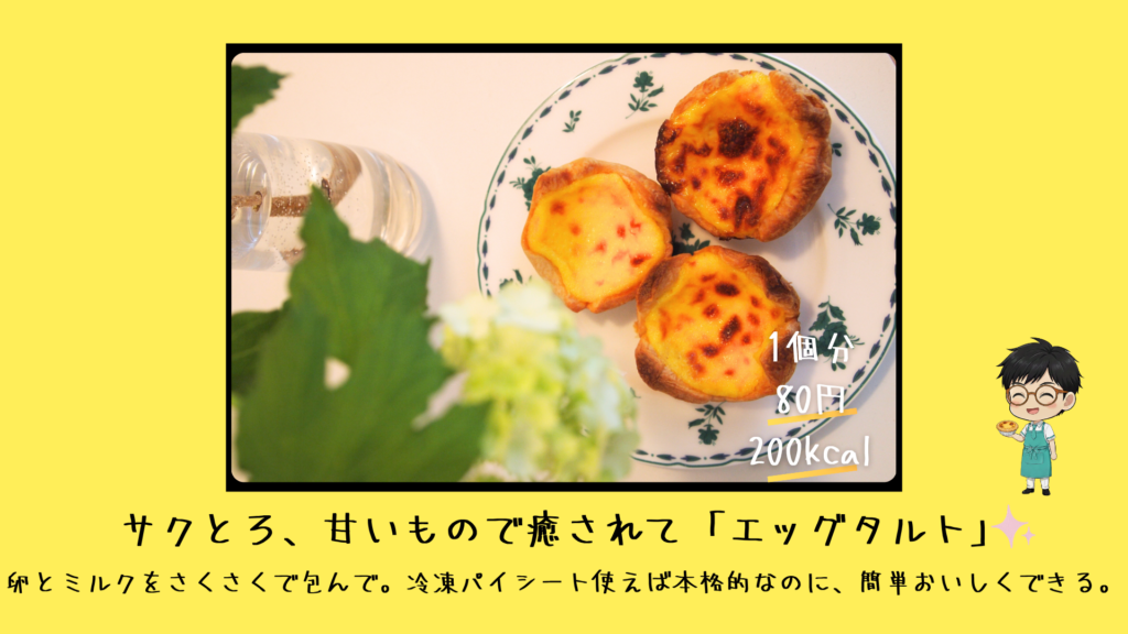 卵焼きも甘いのが大好きな私にとって、中がとろっとして外がサクッとしたエッグタルトは、まさに「癒やし成分」がたっぷり詰まった最高のお菓子なんですよね。
