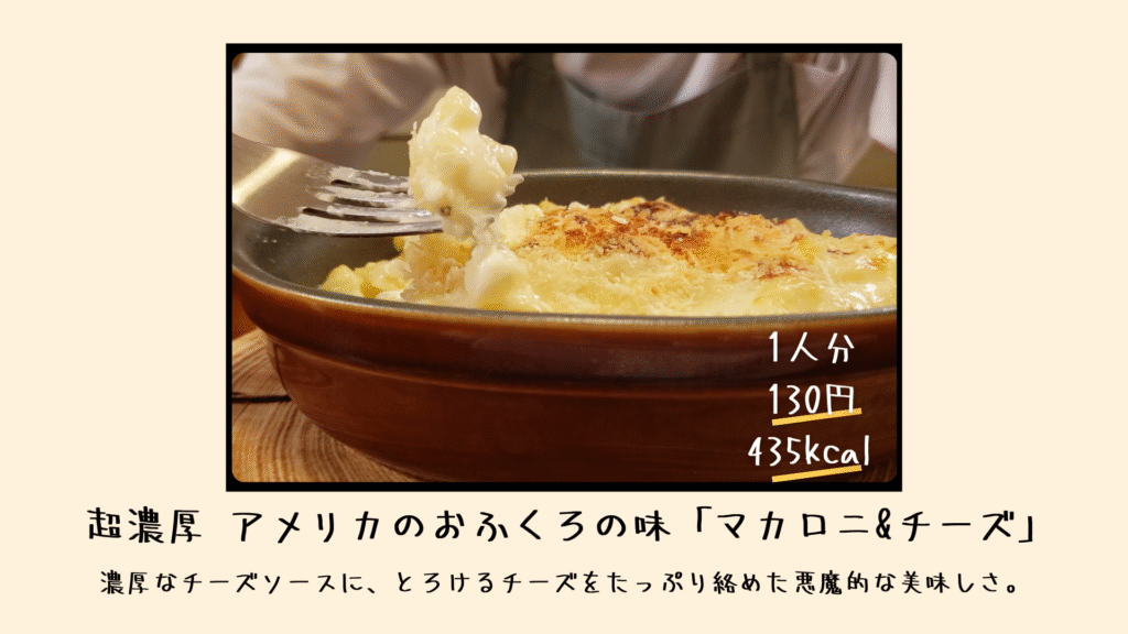 完成したマカロニ&チーズは、濃厚さMAXの悪魔的な味。一口食べた瞬間、まるで長年探していた宝箱を開けたような衝撃でした。