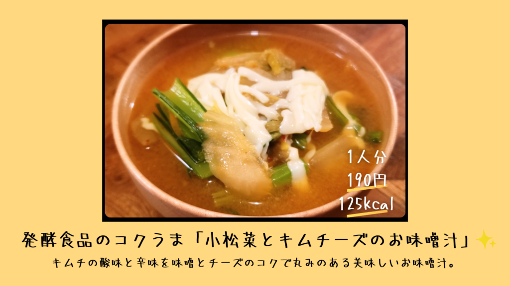 「小松菜とキムチーズのお味噌汁」をご紹介します。