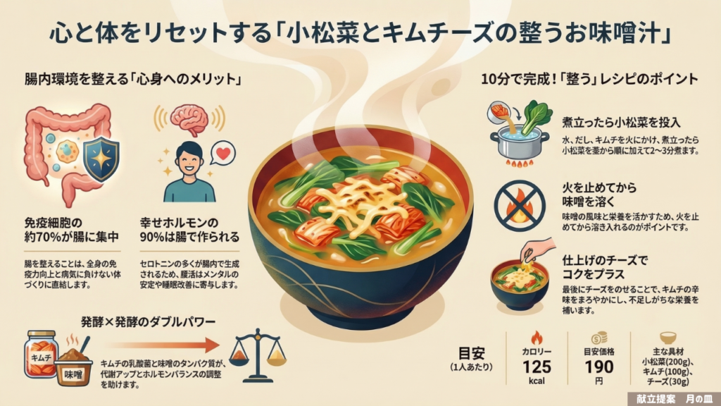 🥣 小松菜とキムチーズのお味噌汁(2人分)