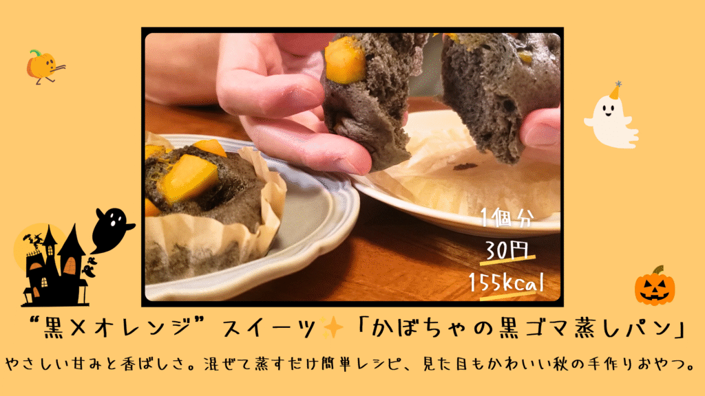 【黒ごま×かぼちゃのふわもち蒸しパン】秋の香りを包み込む、やさしいハロウィンスイーツ