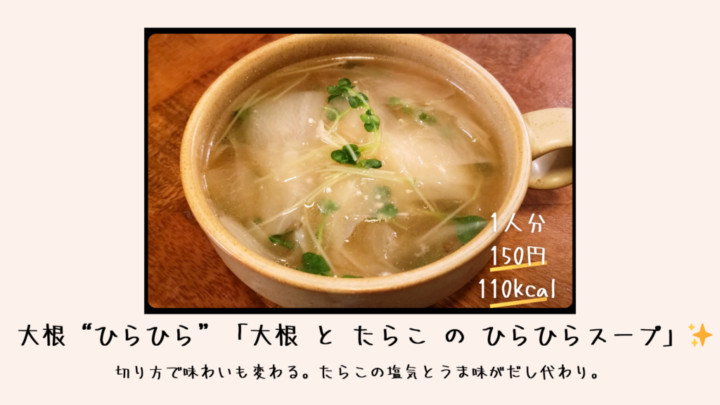 「大根とたらこのひらひらスープ」をご紹介します。