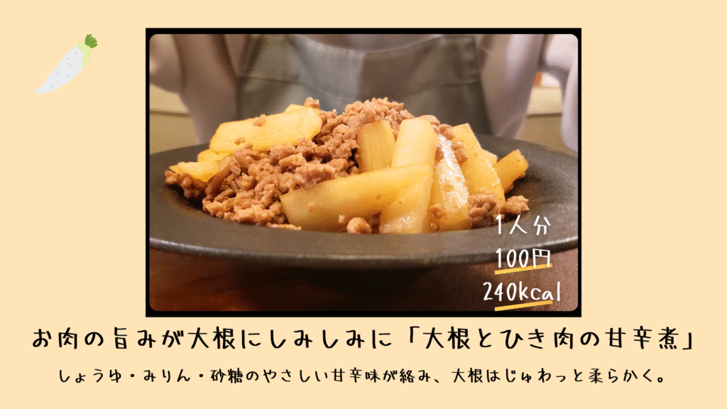 「大根と挽き肉の甘辛煮」をご紹介します。